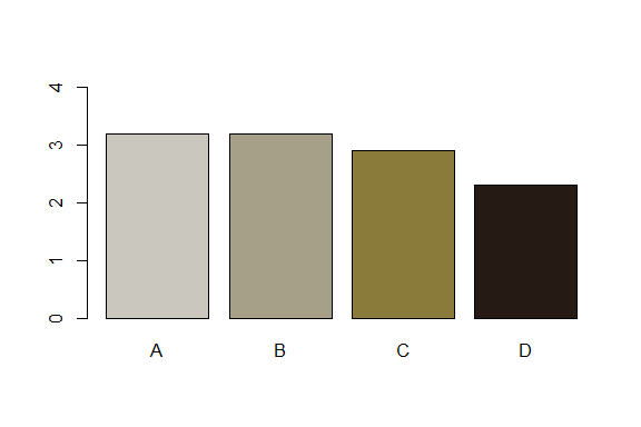 barplot(aggregate(dat$var3,list(dat$Group),mean)$x,names.arg=unique(dat$Group),ylim=c(0,4),col=cols)
